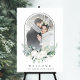 This wedding welcome sign (poster) features your photo in an arched frame, a bouquet of cotton flowers with winter greenery. For more advanced customization of this design, please click the BLUE DESIGN TOOL BUTTON. Matching items are also available.