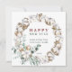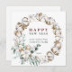 Cotton Flower Wreath Business Happy New Year Holiday Card with QR Code (or Logo) on the Back. For more advanced customization of this design, please click the BLUE DESIGN TOOL BUTTON.