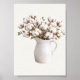 Cotton Flowers in White Pitcher Botanical Farmhous Poster