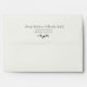 This simple understated A7 size wedding invitation envelope coordinates with the cotton stems in a tin pitcher wedding invitation shown below and has an ivory color on the outside with a dark brown woodgrain pattern on the inside. The names of the bride and groom are in dark brown on the back flap in the same font that was used on the wedding invitation. The return address is in the same grey-green shade from the invitation and in the same font. There is a single cotton branch below the address. If you need any additional matching items, please email your request to niteowlstudio@gmail.com or use the Zazzle chat feature to get in touch.