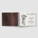 This simple wedding guest book has a rustic farmhouse feel to it that uses a warm winter white watercolor paper background look to showcase the watercolored gray tin water pitcher that is holding a bouquet of white and brown cotton stems in it on the front cover. There is also a small horizontal cotton stem below the words, "Our Wedding" to the right of the pitcher. The names of the bride and groom and the date are printed below the cotton branch in brown and gray-green. The back cover has a dark brown woodgrain look to it. If you need help customizing the text or need any other matching items, please email your request to niteowlstudio@gmail.com or use the Zazzle chat feature to get in touch.