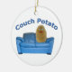 Funny potato character on a blue couch with Couch Potato wording double sided ceramic Christmas ornament. The perfect gift for that person who likes to spend a lot of time relaxing.