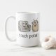 A potato and a couch binge together, boldly happy and embracing lazy days. The scribbled style keeps the humor light and relatable.