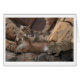 Digital painting of a mother cougar with 3 playful cubs against the cliff rocks by award winning artist Kathie Miller.