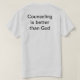 Great anti-theist messages back and front. "Counseling is better than God" and "Faith in God is twisted ideology".