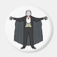Count Dracula Vampire design shows the count standing with arms outstretched with cape behind in a typical scary pose. A hint of sharp teeth, the hairline and the special brooch are giveaways to the Count's evil intent.