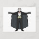 Count Dracula Vampire design shows the count standing with arms outstretched with cape behind in a typical scary pose. A hint of sharp teeth, the hairline and the special brooch are giveaways to the Count's evil intent.