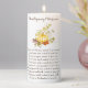 This holiday candle has an elegant image of an orange pumpkin and autumn leaves against a white background and the poem Thanksgiving Observance by an unknown author about counting your blessings and counting on God.