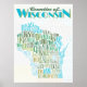 The 72 beautiful counties of the great state of Wisconsin depicted in whimsical typography. Dimensions are 18"W x 24"H.