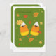 Colors: grass green background, yellow and white candy corn, warm golden, orange, and brown autumn leaves.