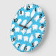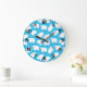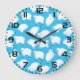 keep track of time with a touch of whimsical charm using this counting sheep wall clock. the clock face features a seamless pattern of fluffy white lambs jumping over a bright blue background, making it a perfect decorative piece for a nursery, playroom, or child’s bedroom. the calming sky blue tones and playful animal graphics create a soothing atmosphere that fits perfectly with a sweet dreams theme. this functional art piece is a wonderful housewarming gift or a delightful addition to a farm-themed home office or kitchen.