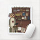 This great mouse pad has country primitive artwork of a country cupboard. A tall raggedy doll, doll house, sampler, and other cute items decorate the picture. Great mousepad for anyone who loves country primitive artwork. Makes a nice gift too.