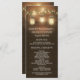 Country Barn Rustic Mason Jar Wedding Programs - features a barn wood background with lighted mason jars and string lights hanging from a tree branch.