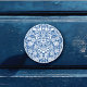 A round ceramic knob with a floral pattern in a rich blue hue by the British artist William Morris (1834-1896), called Sunflower (1879). He was a prolific wallpaper designer from the arts and crafts period.