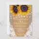 Country burlap sunflowers lights and lace wedding invitation