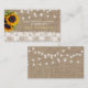 Simple rustic RSVP insert / enclosure mini card featuring a small bunch of sunflowers, a white lace border and strings of twinkle lights on a beige faux burlap background. ++++++++++++ Personalize it with your response text and website!