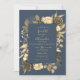 Country chic mauve blue gold floral Wedding Invitation