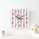 Country Chic Pink Striped Rose Bouquet Monogrammed Square Wall Clock