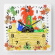 Our original design of these adorable country chicken clan with fall leaves falling all around. This awesome one of a kind wall clock would be a perfect gift for anyone's country styled kitchen.