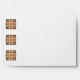 Unique card envelope with repeating quilt patch motif and cute country hen accents on front and inside. Coordinates with "thank you card" in this same design.