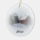 Customize the charming Country Christmas Red Barn Ornament with the current year. Create a custom stocking stuffer, xmas present or holiday hostess gift. This rustic custom farm theme ornament features a quaint winter photograph of a red barn and silo covered with white snow.