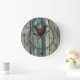 country clock with image of wood background. Red birth and wreatth. also has numbers. Perfect for a fall motif or home country decor