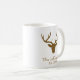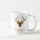 A lovely country decor for your kitchen, this coffee mug features deer head silhouette in brown. Underneath is a template for your family name and another for the date it was established.