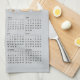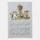 The country calender kitchen towel is deigned with a birdhouse, birds, cow, rabbit and a rooster.