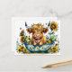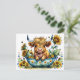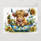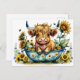 A Adorable Greeting Postcard Deigned Country Highland Calf Cow With Sunflowers