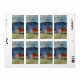 This lovely red wine bottle label features a pretty, impressionistic rural landscape scene. A rustic white country house with a red roof is situated on a grassy field with flowers. A blue mountain looms behind. Clouds float in the sky. All text can be customized with your special information.