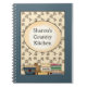Create and personalize your very own one of a kind notebook. Start with this country themed binder featuring a graphic of baking goods, a rolling pin, a pie, a mixing bowls and a bag a sugar, set against a blue background scattered with little cherries, The front of the notebook features a custom wording template for you to personalize with your own wording.