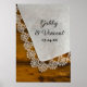 The charming Country Lace Barn Wedding Poster Print makes a great keepsake for your casual yet classy rural country farm, rustic barn, ranch or western wedding theme. This rustic chic custom rustic wedding print features a quaint photograph of a vintage lace trimmed white linen handkerchief with a brown weathered barn wood background.