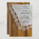 Invite the junior and senior class of your high school for some down home fun with the shabby chic Country Lace Junior / Senior Prom Invitation. Customize it with the name of your school, location and details of your dance. This quaint custom high school dance invite features a photograph of a white lace handkerchief with a brown weathered barn wood background. Great for a casual yet classy rural country farm, rustic barn, ranch, western or wild west prom theme.