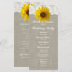 This lovely vintage rustic style wedding program has an easy template that allows you to fill in the wedding party on one side, and the order of ceremony on the other. Vintage style white lace on linen, with a cheerful yellow sunflower. Click the customize button if you need to change anything. NOTE THAT ALL ELEMENTS ARE PRINTED EFFECTS--there is no actual linen.