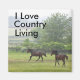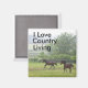 Photograph of Standardbred Horses running through a pasture or field on a misty morning, with the words "I Love Country Living", printed on a Magnet.