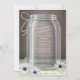 Rustic and beautiful Southern country Anniversary Party invitations (personalized for any year) featuring an illustration of a mason jar with twine tied around the neck of it, white and purple daisies laying at the foot of the jar, a white & yellow gingham table top, over a vintage brown background. Your celebration details are contained within the glass jar, to where if your text extends into the shading of the jar, the text will be shaded too (recommended to keep lines short).