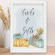 Fall Cards & Gifts sign - perfect for fall baby shower, bridal shower, birthday, wedding etc. Lettered with "Cards & Gifts" in cute calligraphy and decorated with watercolor pumpkins, rustic log basket and jug of wheat on blue watercolor wash. Please browse my store - country pumpkin collection - for matching invitations and party decor.