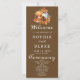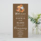 Envision the allure of Autumn's embrace with this captivating dark brown Wedding Program. Its modern and bohemian design showcases the quintessential elements of Fall – radiant orange and serene white pumpkins, intricate acorns, and a rich tapestry of vibrant orange and green leaves.