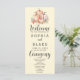 Flipping to the back reveals a neatly organized list of the wedding party, presented in a sophisticated layout. The text, predominantly in a harmonious combination of black and gray, offers a clear and modern presentation. Notably, the words Welcome, Ceremony, and Wedding Party are elegantly scripted, creating a stunning contrast with the rest of the text, enhancing the overall aesthetic appeal.