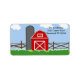 A good old country red barn with white trim. A silo beside it and a rustic fence. Green grass and a few clouds in the sky. Customize with all of your new address information to personalize.