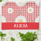 Country is back, with this kitchen towel sporting a red and white gingham background and big, white daisy-like flowers.