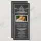 Country Rustic Chalkboard Barn Wedding Programs - features a printed black chalkboard background on both front and back. This design features a white barn or farm with a rooster weather vane near the top with string lights. This design also features a western or vintage style text for established in and wedding celebration.