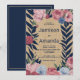 Country rustic ivory navy blue pink floral Wedding Invitation