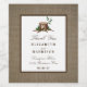 The design features a monogram tree design on a rustic burlap effect background.