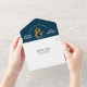 Country Rustic Navy Blue Gold Sunflower Wedding All In One Invitation