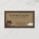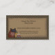 A very primitive country business card featuring a burgundy (red) Saltbox house grouping with pineapple, grubby candle and wooly sheep all surrounded by a primitive checked border. Very primitive country with warm primitive color palette of tan, burgundy, mustard yellow, and black. A lovely business card for any crafter, country business owner or for anyone who loves country, primitives or folk art.