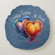This round throw pillow has 2 beautifully woven yarn hearts in vibrant colors of orange, yellow, red, blue pink and purple, allowing it to fit it almost every color scheme! The light blue denim colored background gives it a rustic country feel, while the script lettering elevates it's overall sense of uniqueness as a gift for that friend as close as a sister! The template makes it easy to change the "Country Sisters" to just the word "Sisters" if you'd prefer. Also, note that you also have the option of 2 fabric choices... Brushed Polyester or Grade A Cotton.