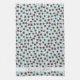 This springtime kitchen towel features hand-drawn ladybugs dancing across a sweet turquoise gingham pattern background, with the customizable text "Hello, Spring!"
