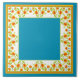 A pretty Ceramic Tile, with a border of Pot Marigold flowers on an white background with a Sky Blue centre and edging. Part of the Posh & Painterly 'Marigold Medley' collection. Add a wooden trivet to use as a trivet.
