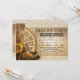 Unique design cowboy - western style shoes with sunflower blossom, rustic country wood background, white vintage lace and typographic texts welcome dinner invitations.